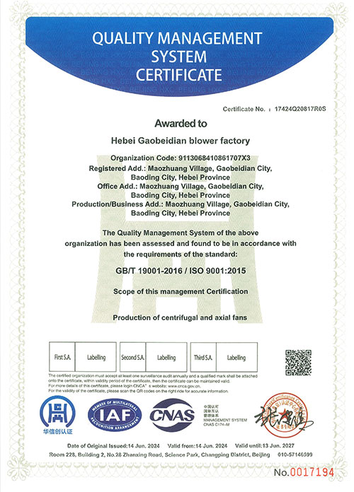 河北高碑店鼓风机厂始终坚持 "优质产品求生存,良好的售后求发展